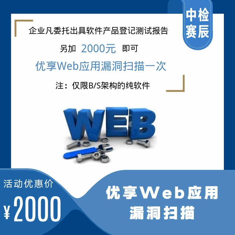為回饋新老客戶(hù),即日起,企業(yè)凡通過(guò)我公司委托出具軟件產(chǎn)品登記測(cè)試報(bào)告時(shí),+2000元即可享受該軟件Web應(yīng)用漏洞掃描,及出具問(wèn)題報(bào)告(市場(chǎng)參考價(jià)為8000元起)。
