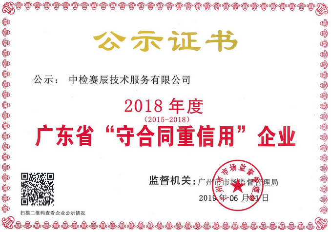 日前,廣東省市場(chǎng)監(jiān)督管理局正式公示了2018年度“廣東省守合同重信用企業(yè)”名單,中檢賽辰技術(shù)服務(wù)有限公司憑借良好的信譽(yù)與契約精神順利通過(guò)評(píng)審,已連續(xù)四年(2015-2018)獲得此項(xiàng)殊榮,同時(shí)彰顯了中檢賽辰企業(yè)的信用體系建設(shè)及維護(hù)合同信用等方面得到工商和市場(chǎng)監(jiān)管部門(mén)的高度認(rèn)可。