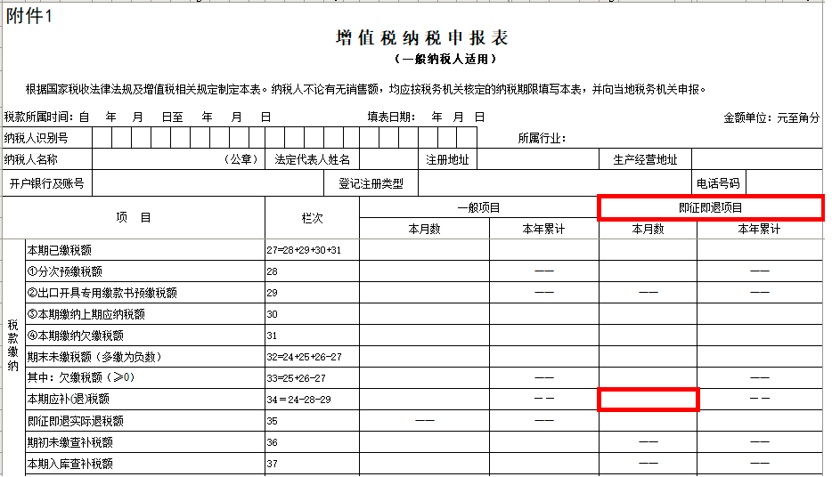 增值稅一般納稅人按規(guī)定享受增值稅即征即退政策的貨物、勞務和服務、不動產、無形資產的,在申報時須將此部分填寫在《增值稅納稅人申報(一般納稅人適用)表》及附表一的“增值稅即征即項目列”征(退)稅數據中。
