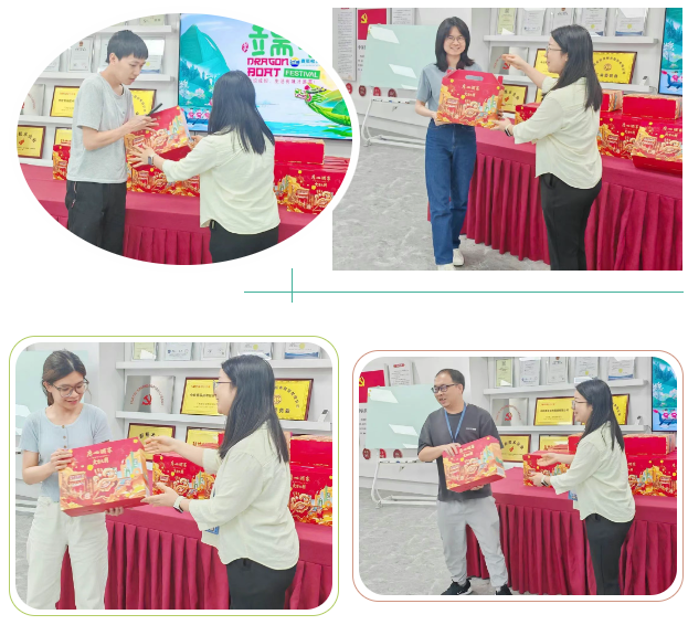 5月28日,工會主席親自將粽子禮盒送到員工手中,每一份粽子的分發,都是工會委員會對員工辛勤付出的認可與感激,也是對公司大家庭溫暖氛圍的進一步營造。這份來自公司的關懷,讓員工們在忙碌的工作中感受到了家的溫暖。收到粽子的員工們臉上洋溢著幸福的笑容,他們紛紛表示,這份禮物將不僅是一份味蕾的享受,更是一份心靈的慰藉。有的員工恨不得立即與同事分享這份美味,有的則小心翼翼地保存起來,打算與家人共度晚餐時共享這份甜蜜。